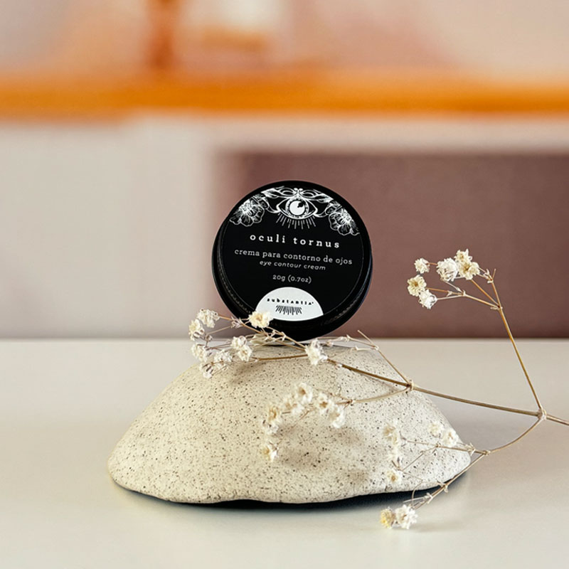 Crema para contorno de ojos, con ylang ylang y mezcla de aceites. Humecta tu piel y ayuda a eliminar ojeras y líneas de expresión.